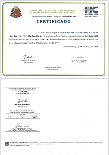 É um profissional perspicaz, completo, de resolução efetiva do meu quadro psiquiátrico, que abrange depressão grave, ansiedade grave, síndrome do pânico, dentre outros transtornos.